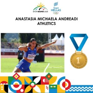 Η Αναστασία Μιχαέλα Ανδρεάδη κατέκτησε το χρυσό μετάλλιο στο Ολυμπιακό Ευρωπαϊκό Φεστιβάλ νεότητας στα Σκόπια στη σφαιροβολία με επίδοση 17.33μ, ενώ ταυτόχρονα υπήρξε σημαιοφόρος της ελληνικής ομάδας στην τελετή λήξης των αγώνων.